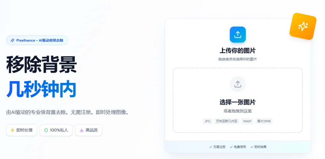 这是一个基于AI人工智能的在线背景去除工具,只需上传图片,系统便会自动处理,几秒钟内即可获得高质量的透明背景图像。支持多种图像格式,如JPG和PNG,且无需注册,还可以使用其他图像处理工具,如图像压缩、裁剪和格式转换等 #背景去除#小崔啥都有