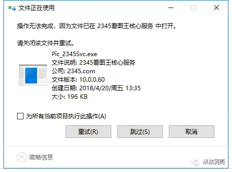 服务占用。其实系统服务也是一个进程,原理和上面类似,只不过关闭服务不是结束进程那么简单,就算结束进程后,服务也会马上开启相关进程,文件还是占用状态。
