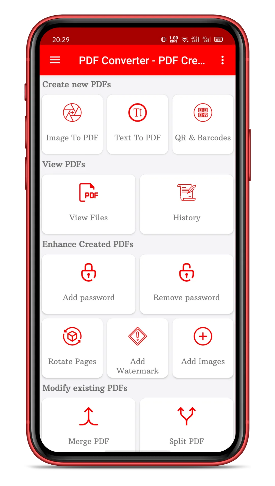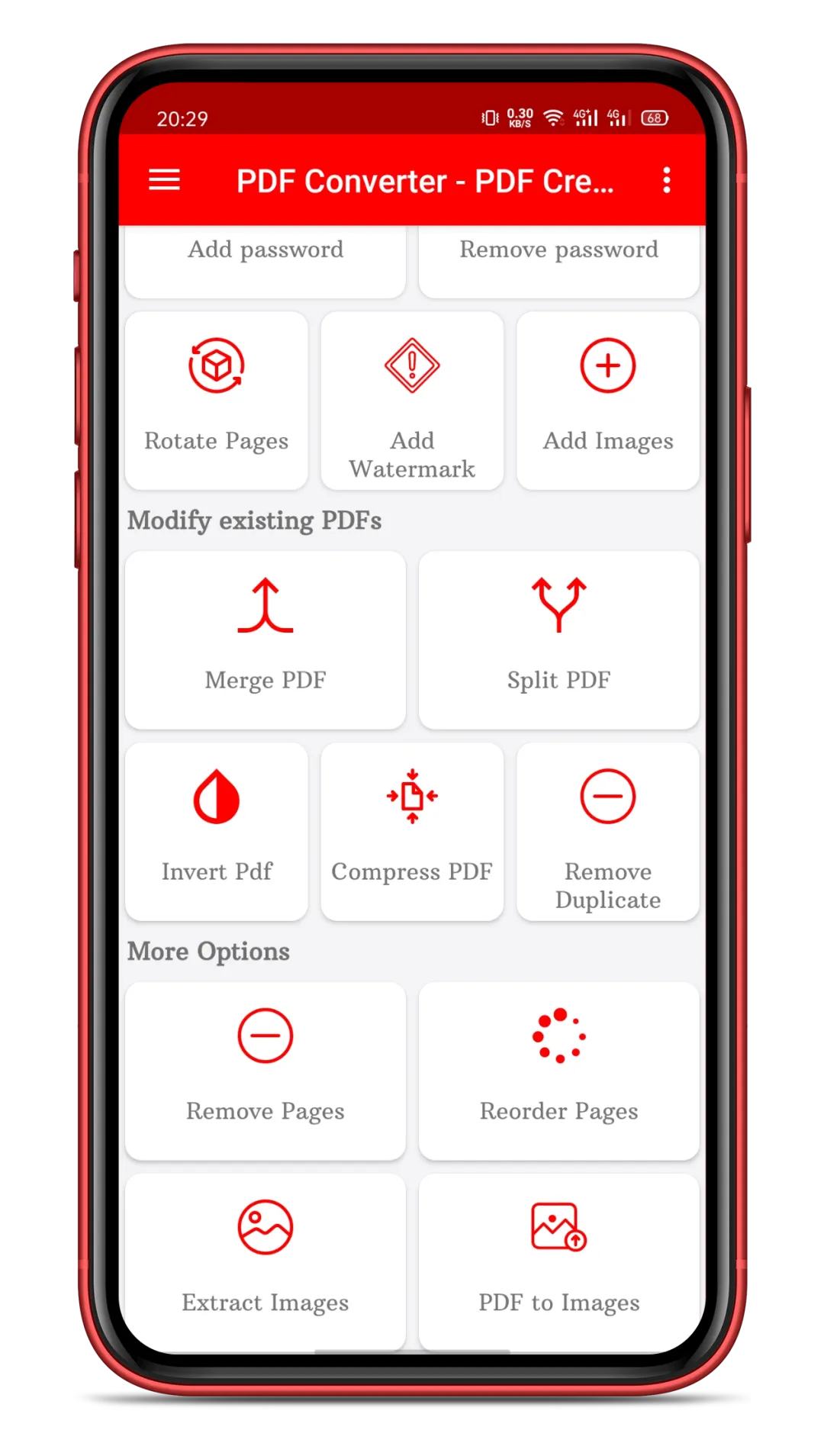 PDF Convertor Pro的主要功能就是将手机本地的图片以及文本转换成PDF文档,其次还支持合并、拆分、翻转、裁剪、压缩PDF文档,对PDF文档内的图片裁剪、编辑、过滤,为PDF文档添加/解除密码保护,扫描二维码和条形码等功能。