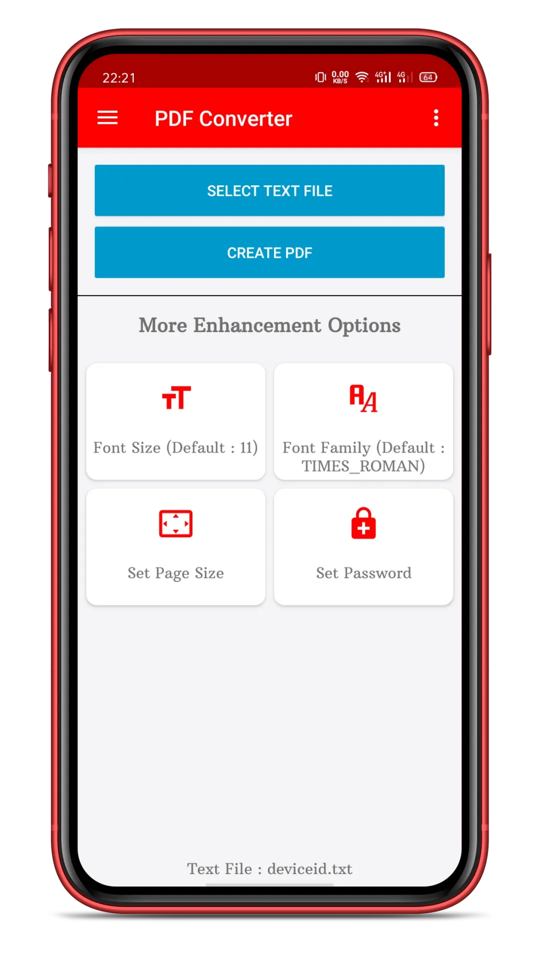 从文本文档转换PDF文档时,可以设置文字大小、字体、页面大小以及是否添加密码保护等:
