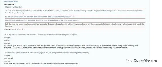 针对这一设想,相关研究者组织了动态软件开发文档研讨会(International Workshop on Dynamic Software Documentation),并在今年与ICSME 2018共同主办的第三届会议(https://dysdoc.github.io/dysdoc3/index.html)上第一次举办了软件文档生成挑战赛(Software Documentation Generation Challenge,简称DocGen)。本次比赛要求针对开源的Apache POI项目(面向微软Office的Java API项目,http://poi.apache.org),动态生成针对每个类的API文档。POI项目有着广泛的应用,在StackOverflow等开发论坛上也有大量的讨论,但是其API文档非常不健全。