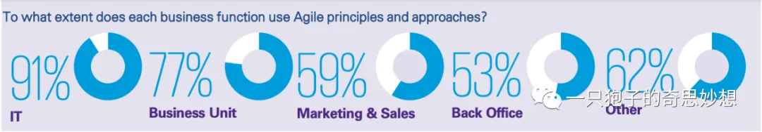 不同职能部门在工作中应用敏捷方法的程度