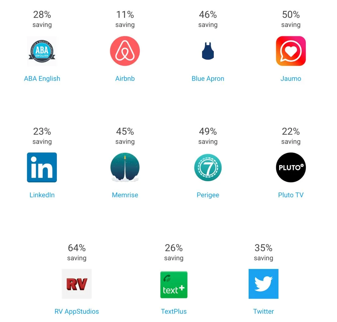 △ 一些知名 app 使用 App Bundle 减小应用体积的数据