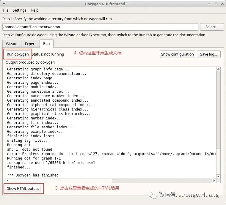 对Linux用户来说,命令行工具可以通过doxygen命令运行,而图形界面可以通过doxywizard命令运行。