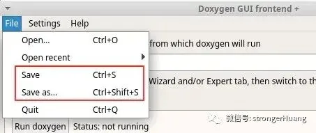 上面我们配置了一些选项,也成功生成了HTML文档。我们希望下次代码改动后能够继续沿用上次配置,那么我们可以把这些配置保存成Doxyfile文件,如下图所示。