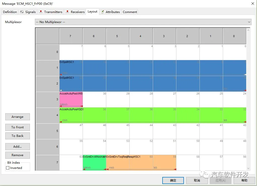 例如:图2中显示包含EnSpdHSC1信号的报文ID为0xc9,