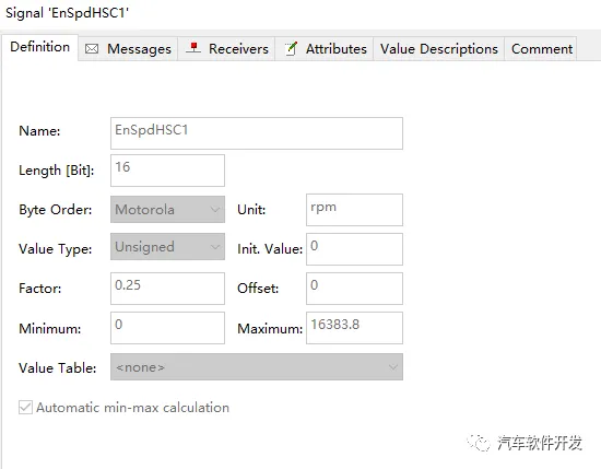 比如下图发动机转速信号(EnSpdHSC1)的参数: