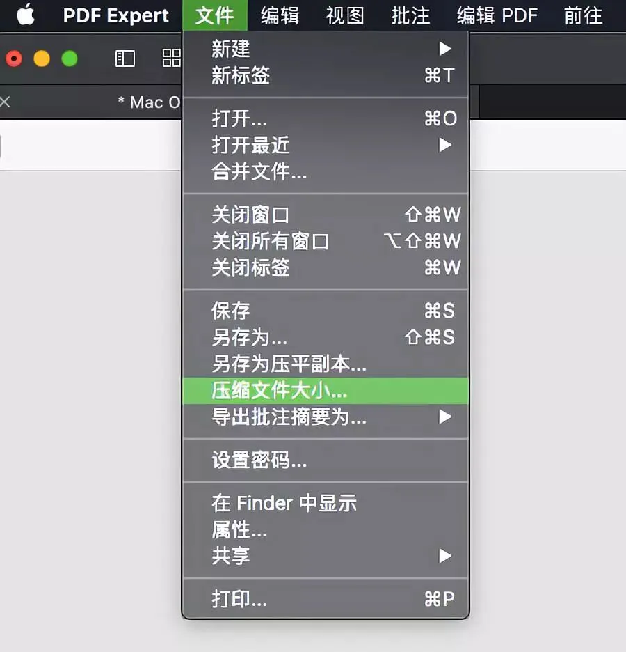 点击菜单栏中的「文件」-「压缩文件大小」,可根据需要压缩 PDF 文件的体积。