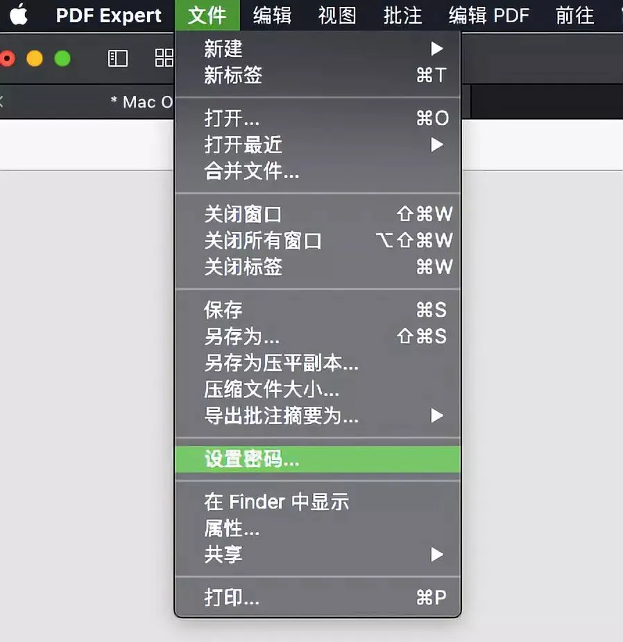 点击菜单栏中的「文件」-「设置密码」,即可对文档进行加密保护。