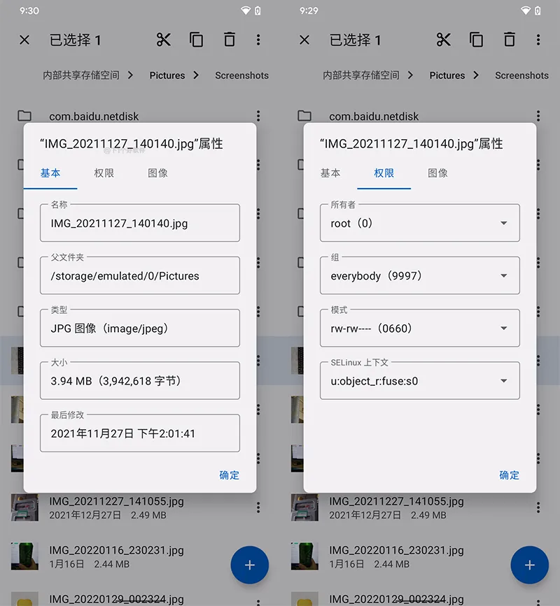对于一些文件你还可以查看详细的基本属性,甚至还支持修改权限功能,可选择所有者、组、模式。