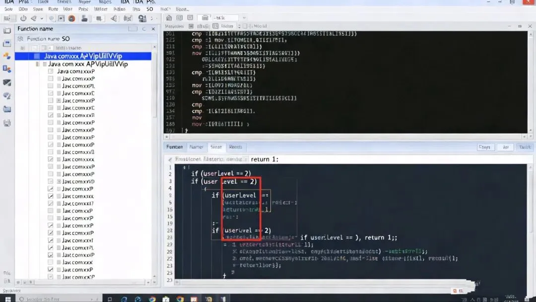 – 看不懂汇编?可以用工具的伪代码功能(IDA和Ghidra都有),它能把汇编翻译成接近C语言的伪代码,比如 if (isVip == 1) { return true; } ,这样就好懂多了。