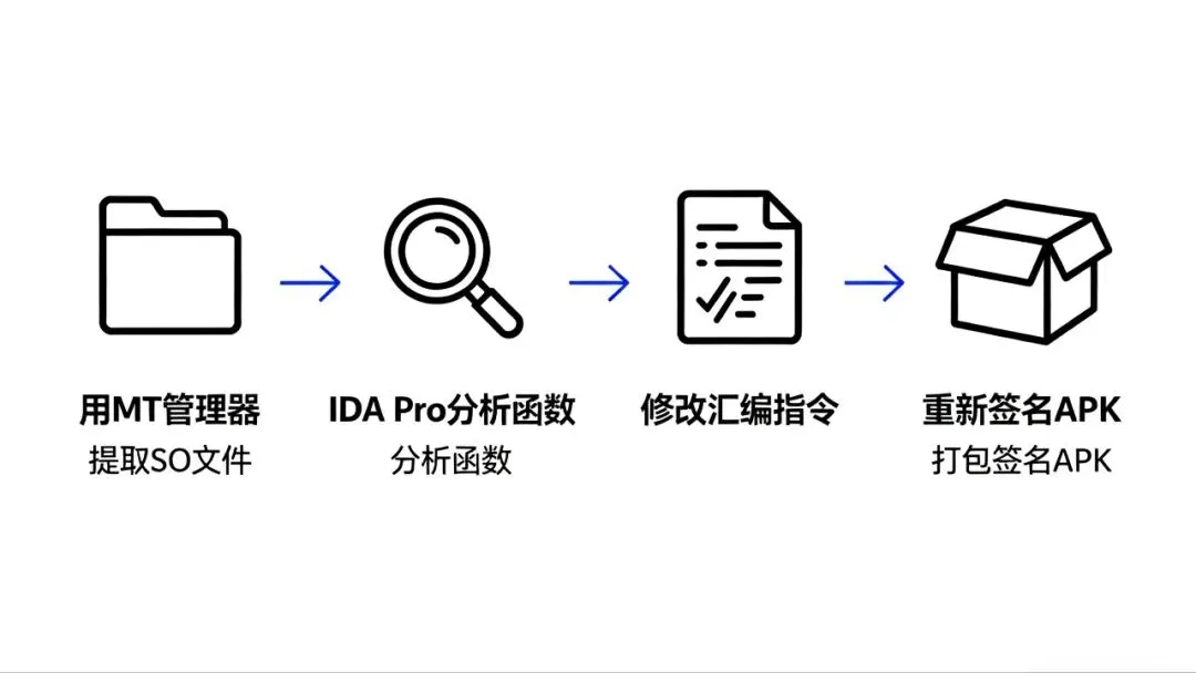 2. 遇到加固的SO怎么办:如果APK加了360加固、梆梆加固,SO文件是被加密的,得先脱壳!脱壳后才能拿到真实的SO文件(脱壳可以用 FDex2 、 Frida 这些工具,新手先学简单脱壳);