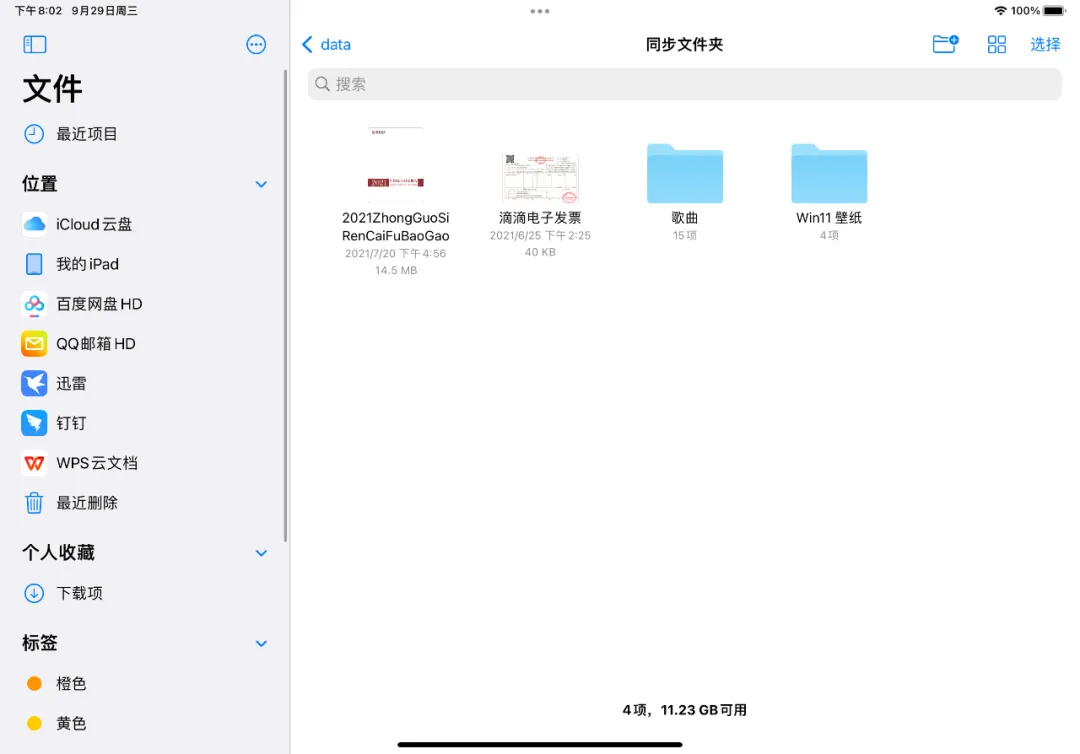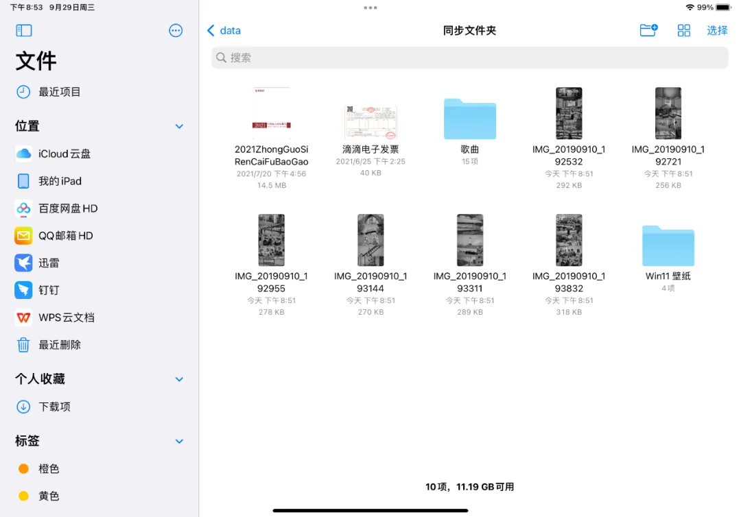 到了 iPad 上也是一样,此时 Windows 电脑 “ 同步文件夹 ” 里的文件已经同步到了 iPad 中: