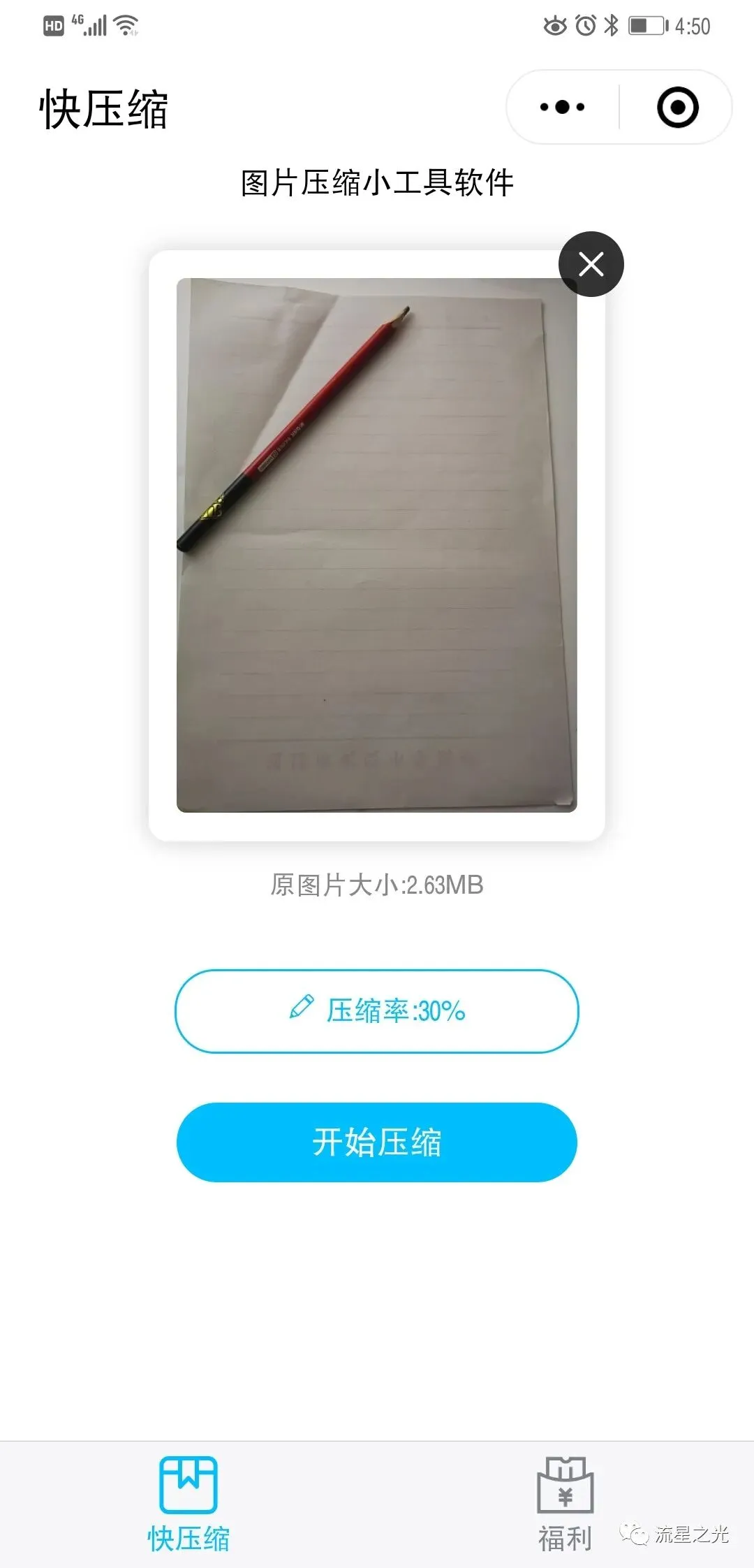 可以看到原图片大小,调整压缩率为30%,然后开始压缩。
