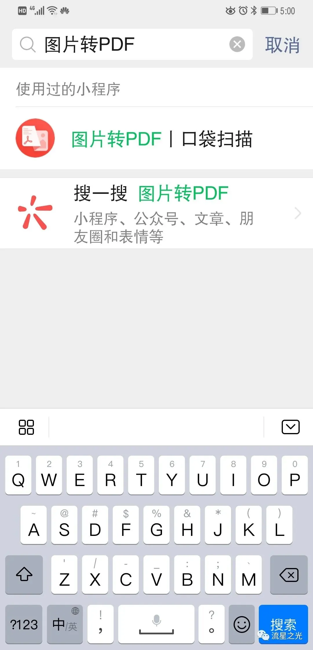 微信里搜索“图片转PDF”,找到这个小程序。
