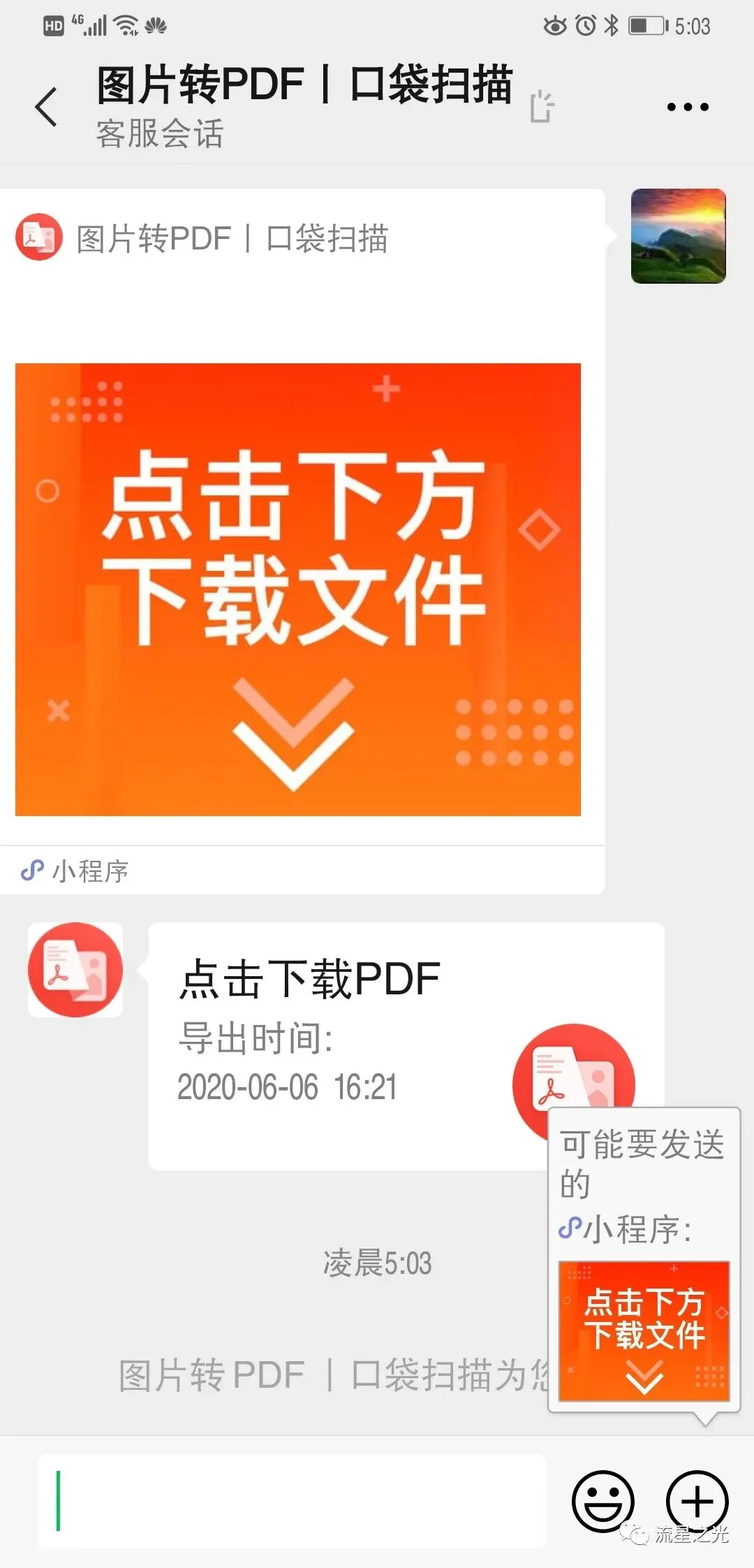 找的所需文档,然后分享,分享时要选择“以文件发送”,用这种方式发送的就是单独的文档,而不是一个小程序。