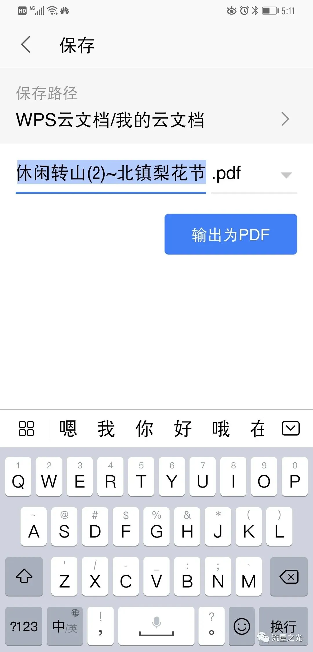 注意!这时你一定要选择把文档保存在手机上,比如“我的文档”文件夹。然后就能在手机上找到生成的PDF文档了。