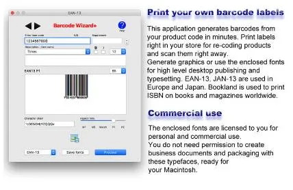 Barcode Wizard+ 是一款可以帮你快速将商品编号制作成为条码标签的工具,支持 EAN-13, EAN-8, Jan-13, Bookland (ISBN) 等流行的条码,而且简单易用
