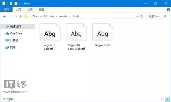 通常这个文件夹里存放的是一些静态文件,比如说明文档或者字体文件,我们以Microsoft To-Do的安装包为例,它的/assets目录下有个名为fonts的子目录,打开它,我们可以看到三个ttf格式的字体文件。