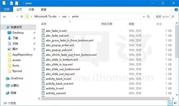 其中,以anim开头的文件夹,通常里面存放的是应用程序的动画效果资源;