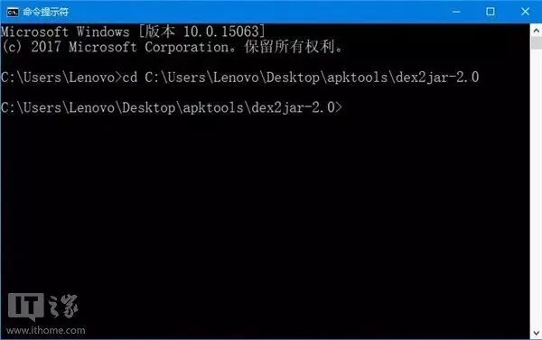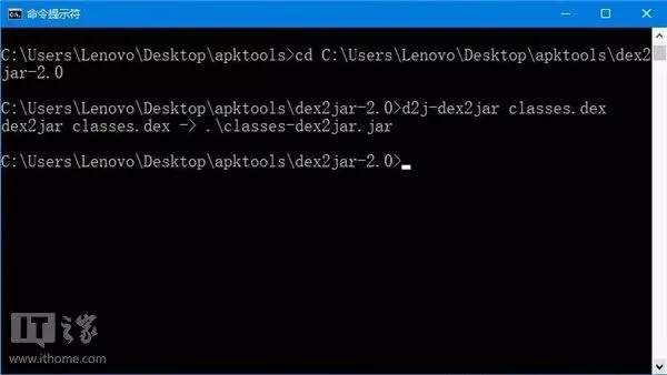 打开命令提示符,cd进dex2jar-2.0所在目录;