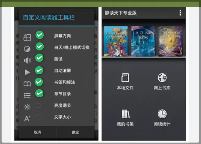 Moon+Reader Pro 是一款 Android 平台的电子阅读器,支持 EPUB、PDF、MOBI、DJVU 和 FB2 等多种电子书格式。软件提供丰富的阅读设置,如字体、字号、行距、背景颜色和亮度等,用户可以根据自己的喜好进行个性化设置。同时,Moon+Reader Pro 支持多种阅读模式,包括日间模式、夜间模式和自动模式,可以根据环境亮度自动切换模式,让用户的阅读更加舒适。
