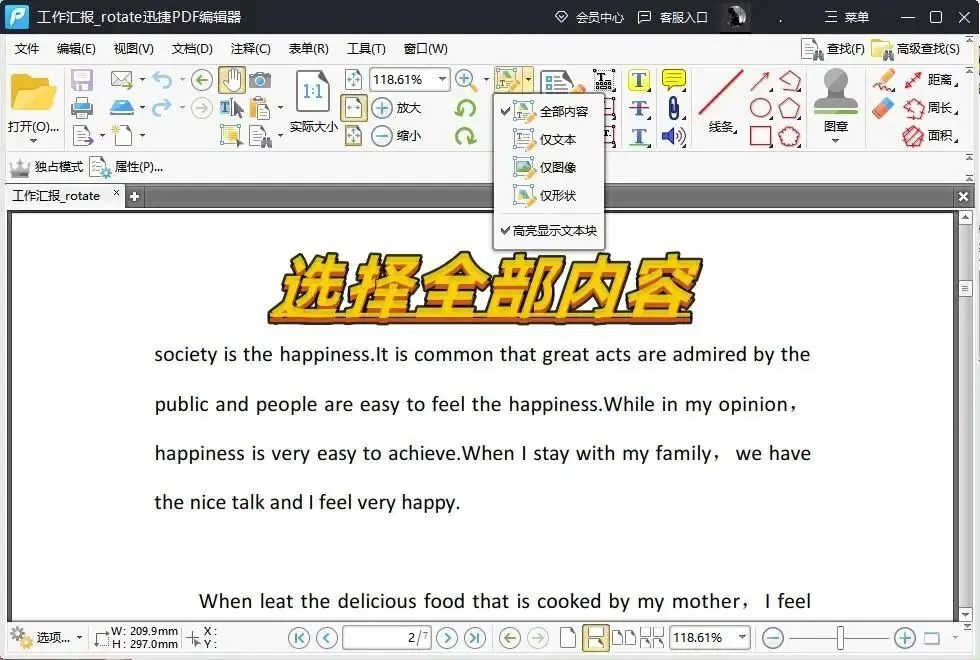之后可以点击全部内容来设置编辑修改的范围,还有其他操作大家均可尝试。