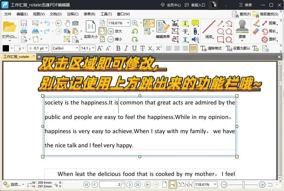之后我们就可以自由编辑PDF内容啦,字体样式、删改内容等等需求都可以实现。