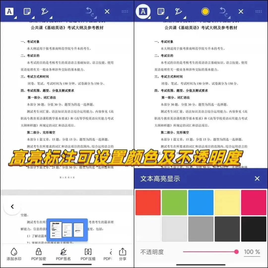 PDF编辑包括高亮标注、画笔和注释等功能。