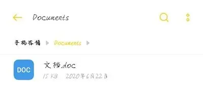 如果我们选择的保存位置在【本地 – 手机/我的文档/XXX(文件夹名)】,那么只需要打开手机内对应的文件夹即可。保存在【手机】位置的话,打开“文件管理”,在手机存储下找到对应的“.doc”文件。保存在【我的文档】内的文件,可以打开“手机存储 – Documents(文档)”文件夹就可以查看到该文件。