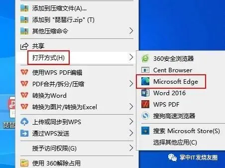 步骤一:我们先右键点击PDF文件,在【打开方式】里选择【Microsoft Edge】,用它打开文件。