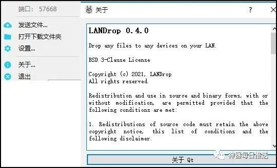 这是一款类AirDrop的跨平台局域网传文件工具。