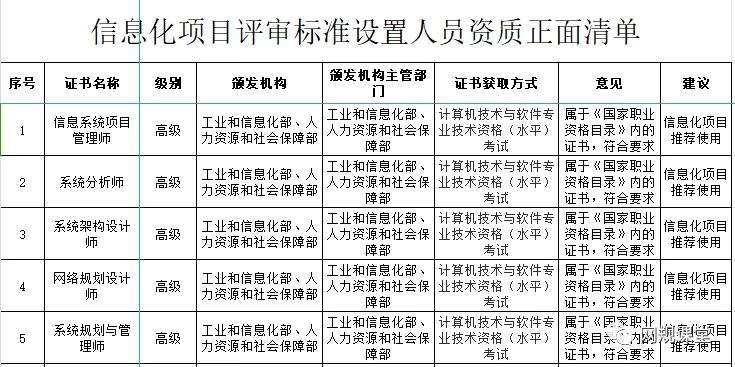软考在政府采购招标的用途越来越广泛。近日,广州市财政局印发了政府采购软件开发项目采购文件参考模板,明确信息化项目评审标准设置人员资质正面清单。