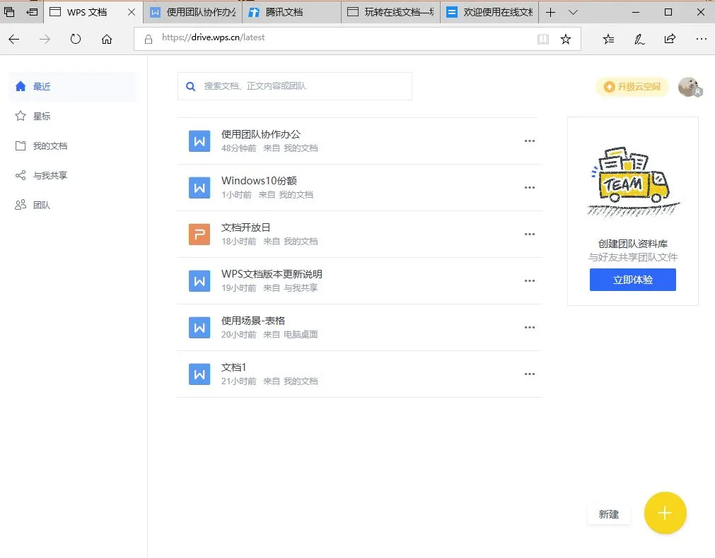 ▲腾讯文档PC主界面