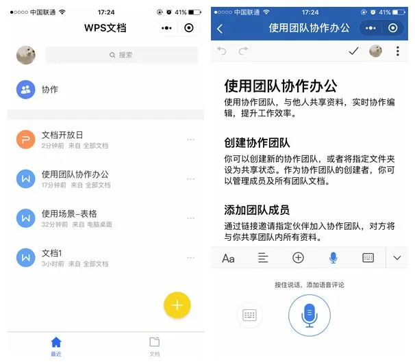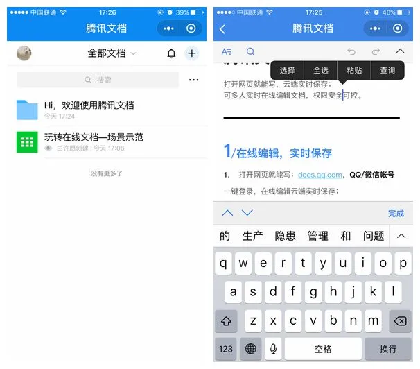 ▲左边是WPS文档,右边是腾讯文档