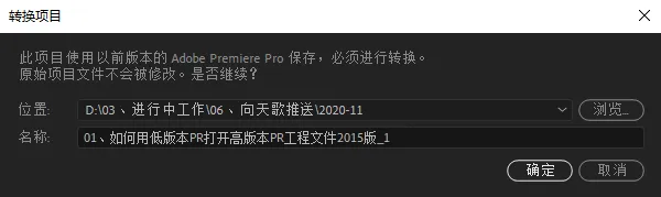 要知道,使用高版本的PR打开低版本的PR工程文件,会提示进行文件的转换