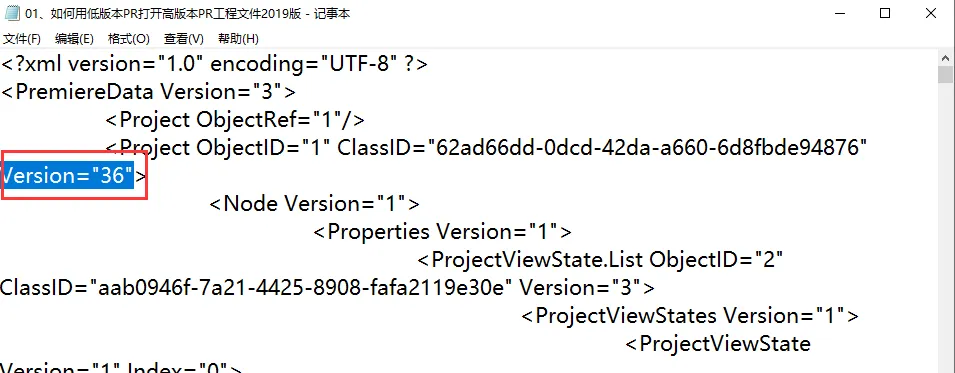 接下来我们就在记事本当中,将数字更改为当前电脑的PR版本即可。