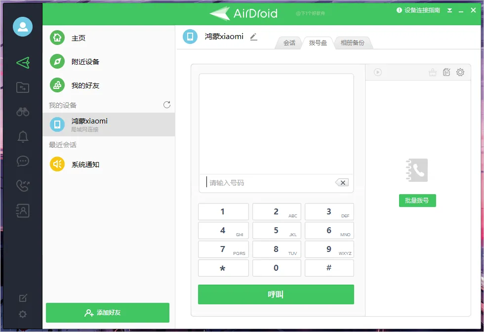 拨打电话:可以在电脑上直接拨打电话,最酷的它居然还支持批量拨打电话功能,导入通讯录号码后,会按着顺序打。不过此功能需要高级账号。