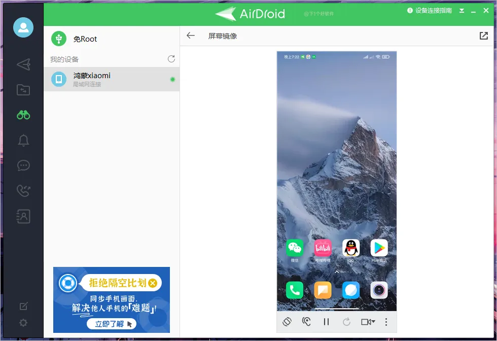 镜像投屏:这个也没什么好介绍,就是把手机屏幕投到电脑上,支持截图、录像的功能。