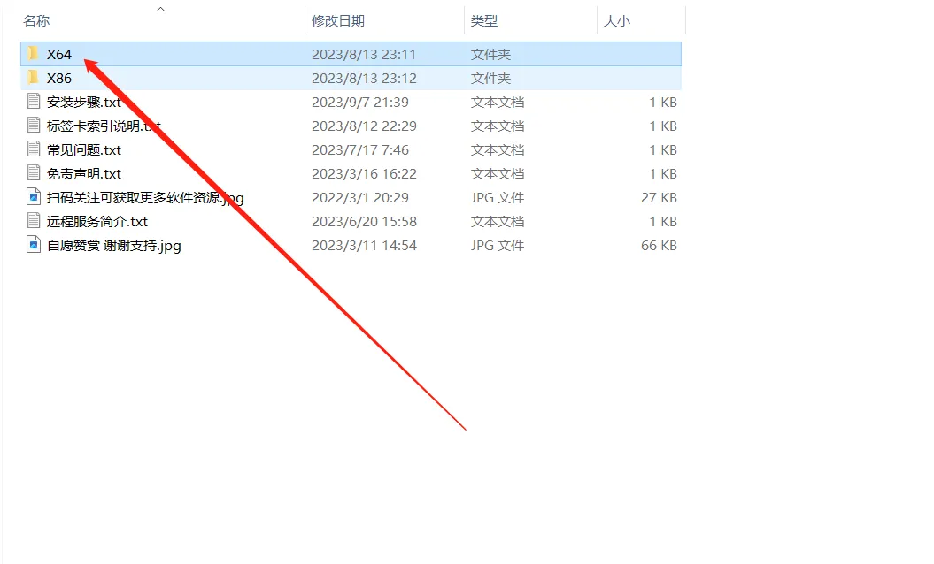 3、双击打开【X64】文件夹(32位机双击X86文件夹)。