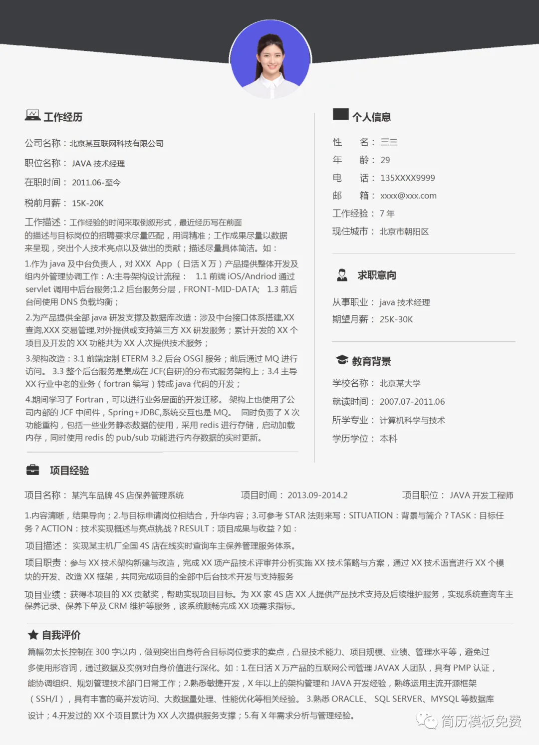 如:1.在日活X万产品的互联网公司管理JAVAX人团队,具有PMP认证,能协调组织、规划管理技术部门日常工作。