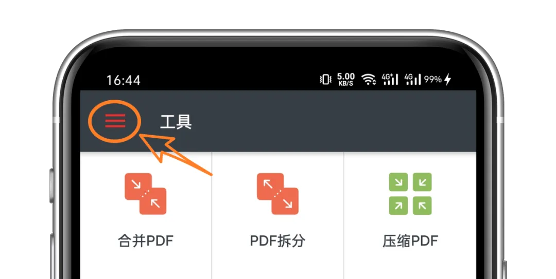 安装后打开APP,点击左上角的菜单: