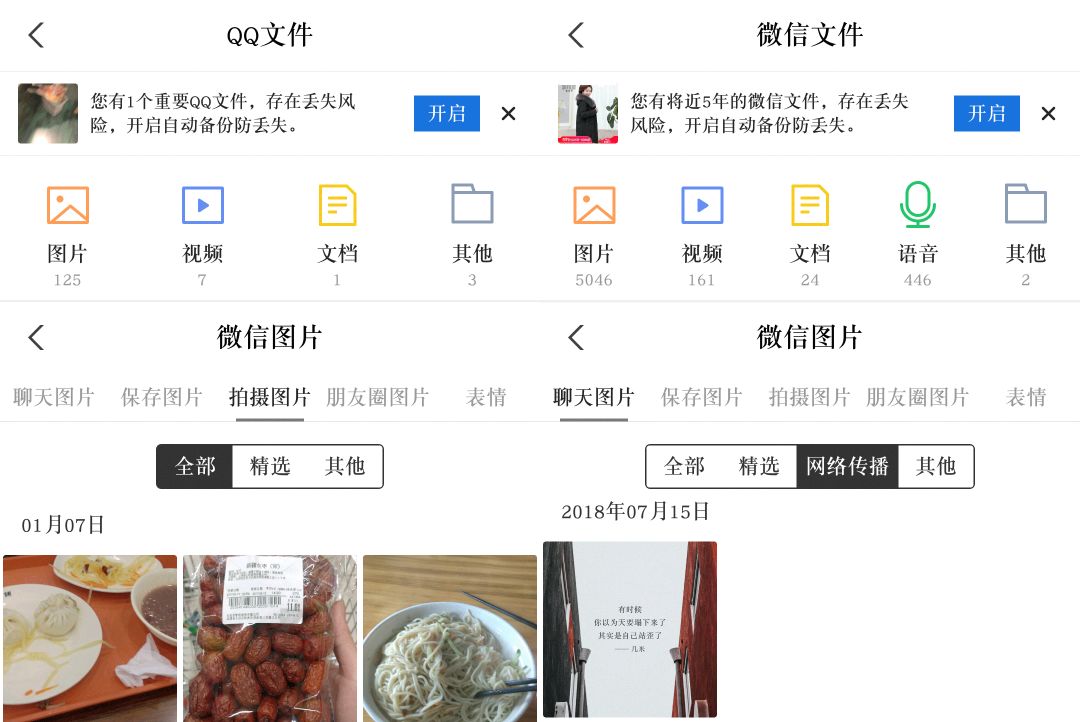 这时候如果有那么一款app,它能把这些图片、语音、文档、安装包、视频都给提取分类搞好,就再好不过了。