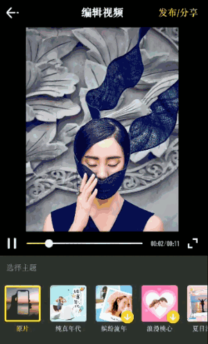 这个功能腾讯QQ浏览器也有,叫做时光相册,可以将多个图片汇成一个视频,添加音乐、滤镜、动画就做出一些不一样的回忆感,当然也支持视频剪辑。