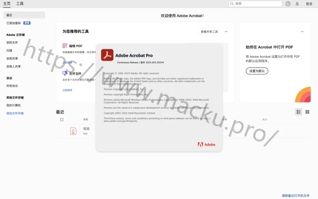软件介绍Acrobat Pro DC 2023 是一款功能强大的PDF文档处理软件,由Adobe公司推出。这款软件在原系列软件的基础上进行了性能和功能的改进和优化,旨在提供更完善的功能和更好的用户体验。Acrobat Pro DC 2023具有直观的触控式界面设计,简化了工作流程,使用户能够更方便、高效地处理PDF文档。新版软件还新增了统一的文档搜索功能和“填写并签名”工具,支持在任何设备上填写、签署以及共享PDF文件。此外,Acrobat Pro DC 2023还新增了图像编辑功能,可以将任何纸质文件转换为可编辑的电子文件,用于传输、签字。Acrobat Pro DC 2023还为用户提供了丰富的工具,如文字编辑器、图片编辑器、注释工具、表单填写器等,帮助用户在PDF文档中进行各种编辑和添加注释的操作。同时,它还支持将PDF文件转换为其他格式,如Word、Excel、PowerPoint等,以满足用户的不同需求。此外,Acrobat Pro DC 2023还具有安全保护和OCR等高级功能。它具有数字签名和加密功能,可以确保文档的安全性和完整性。用户可以使用数字签名来验证PDF文件的身份和来源,以防止文件被篡改或伪造。另外,Acrobat Pro DC 2023还拥有OCR(光学字符识别)功能,可以将扫描的纸质文档转换为可编辑的PDF文件。总之,Acrobat Pro DC 2023是一款功能强大、易于使用的PDF文档处理软件,能够满足用户在处理PDF文件方面的各种需求。有问题看这里