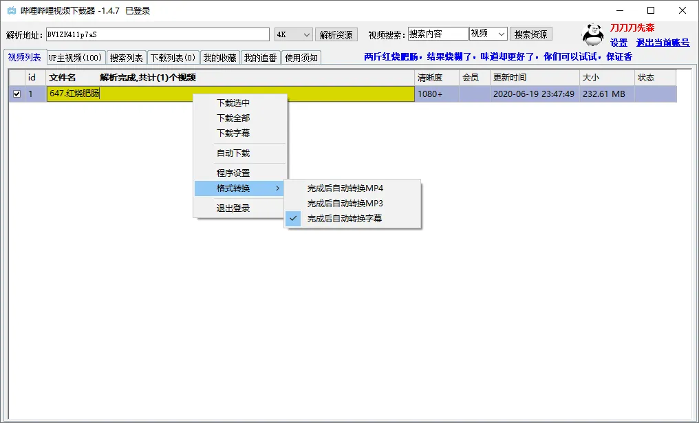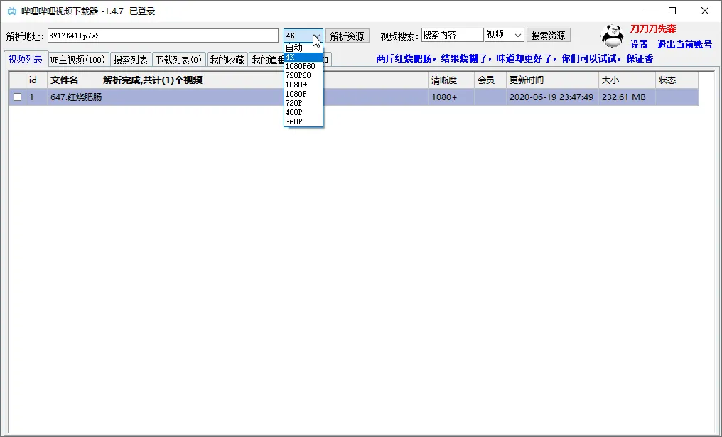 哔哩哔哩4K视频下载器 v1.4.8 可下封面字幕文件