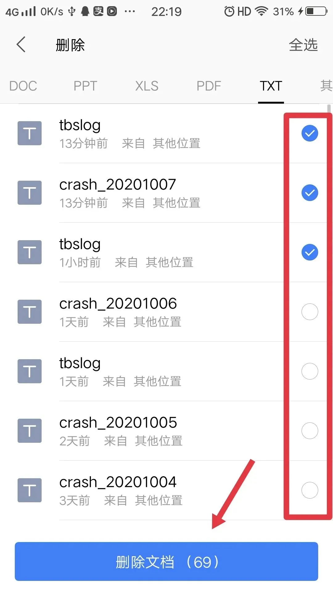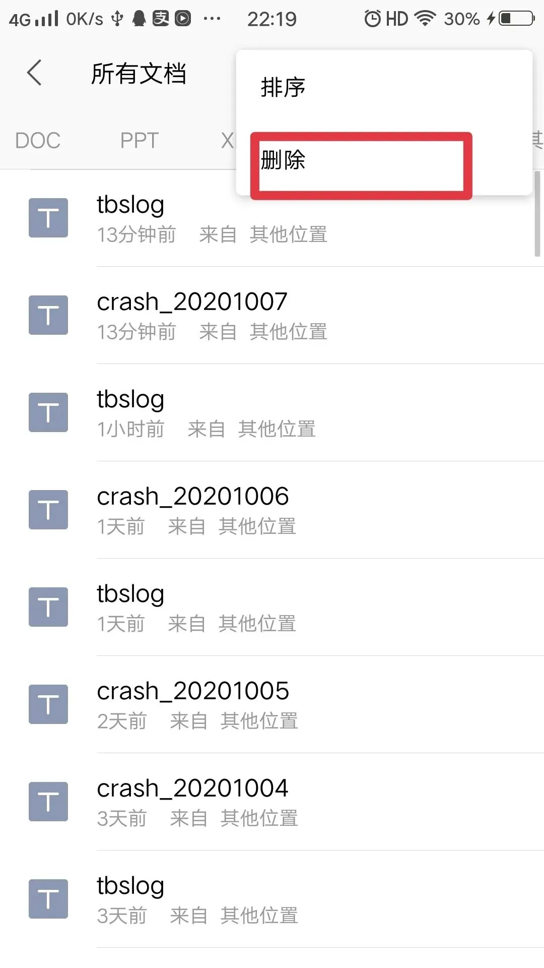 亲,手机WPS里的文档太多了,我一个一个删得头都晕了,有好法子吗?