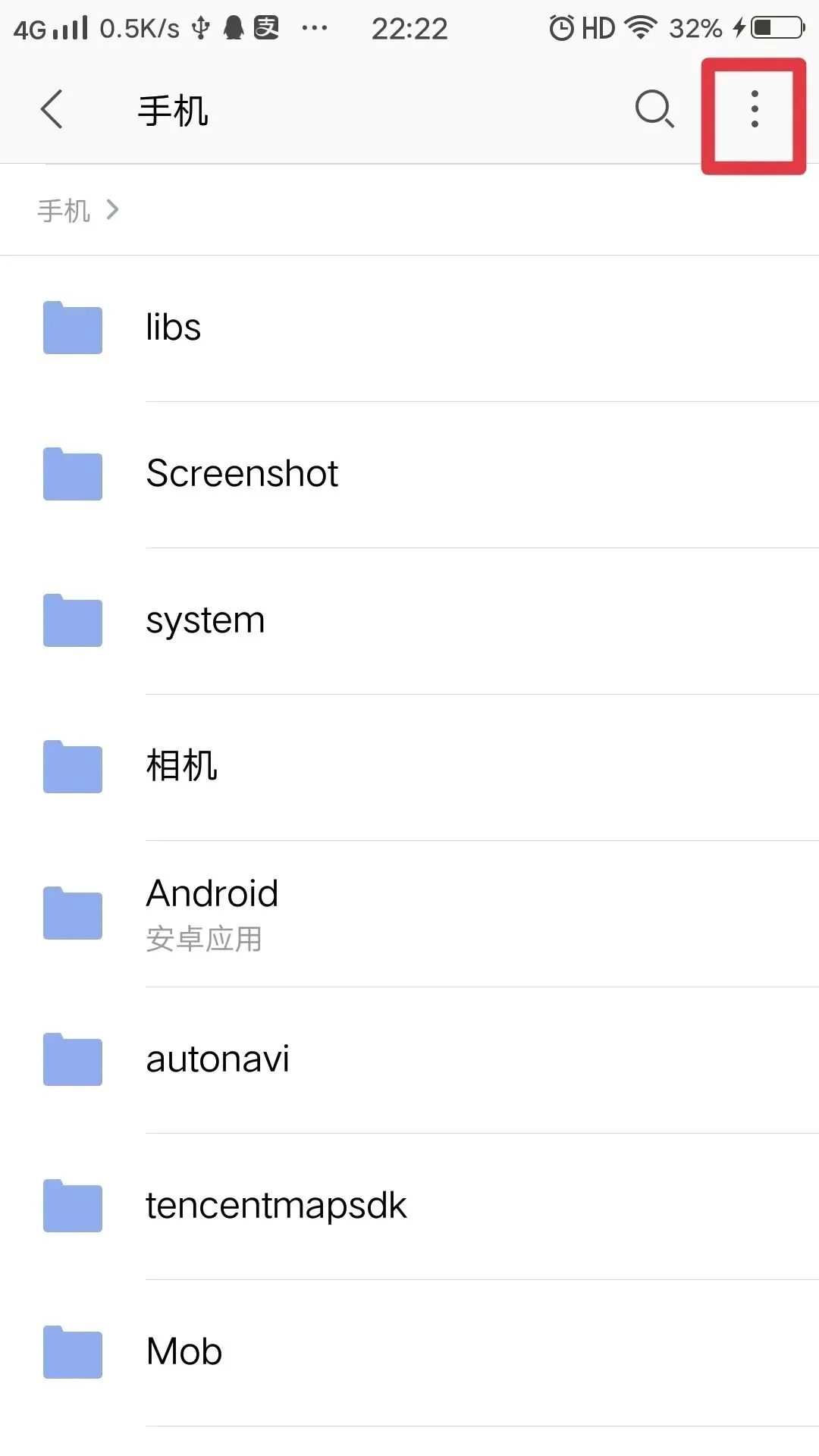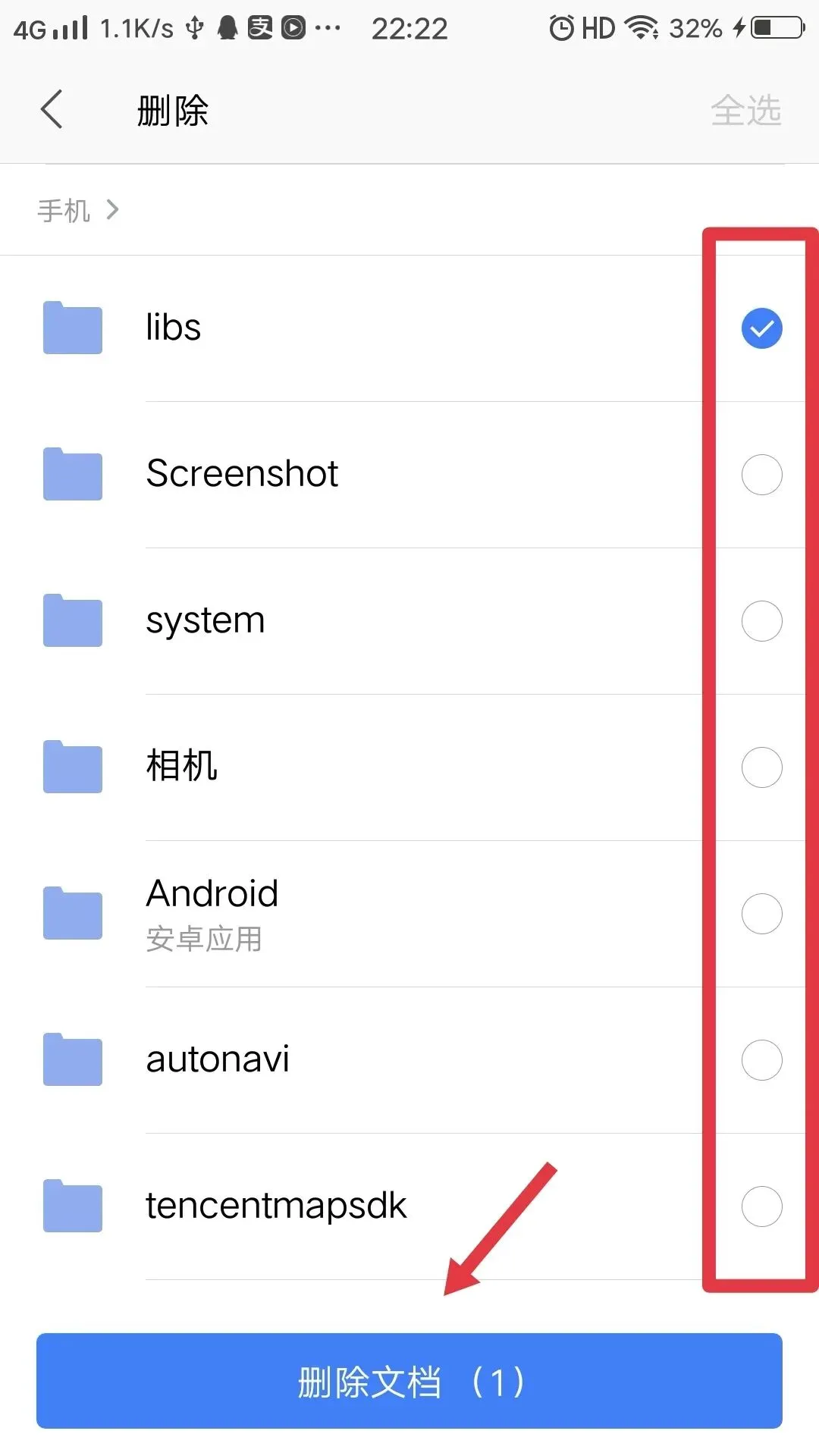 注意:手机上有系统目录,是不允许被删除的,所以全选在这个时候是不可以操作的。