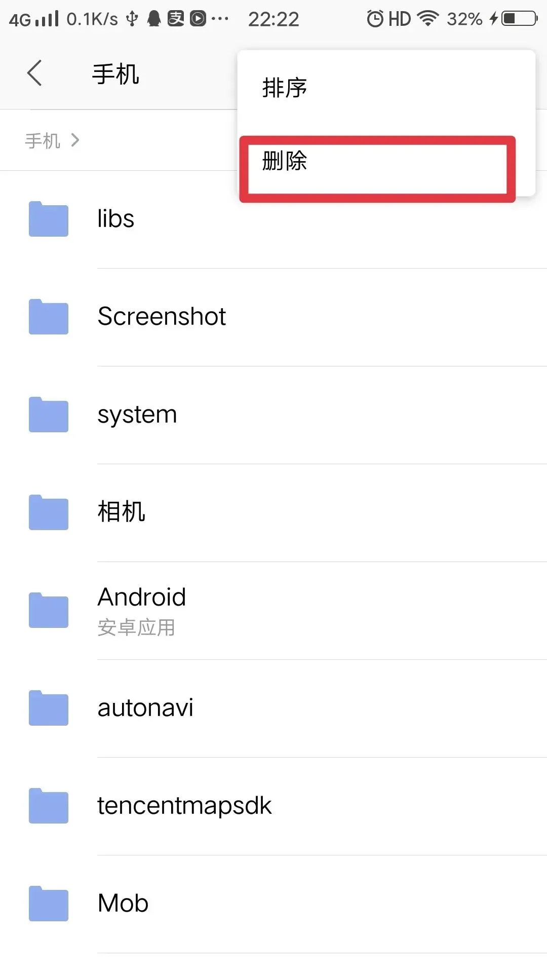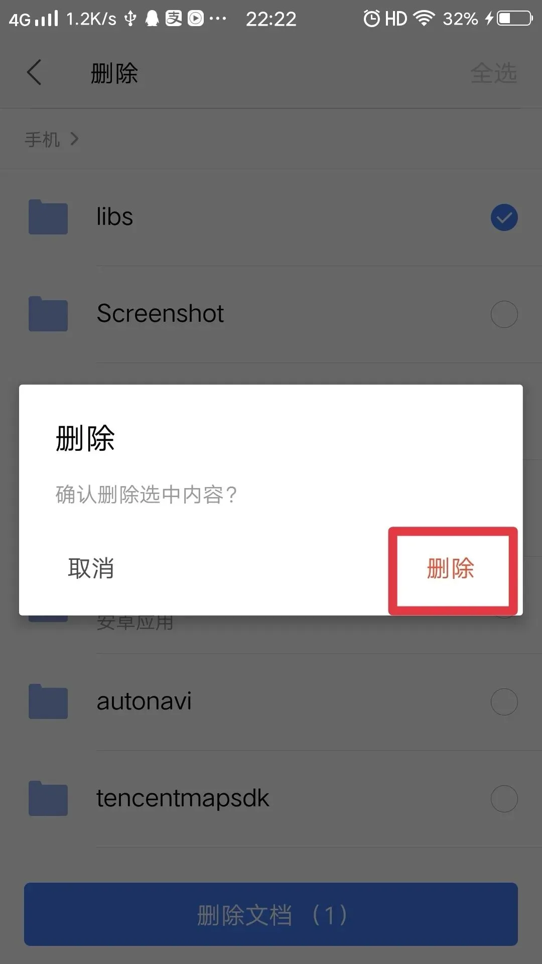 清理手机设备上某个文件夹及其下面的文档