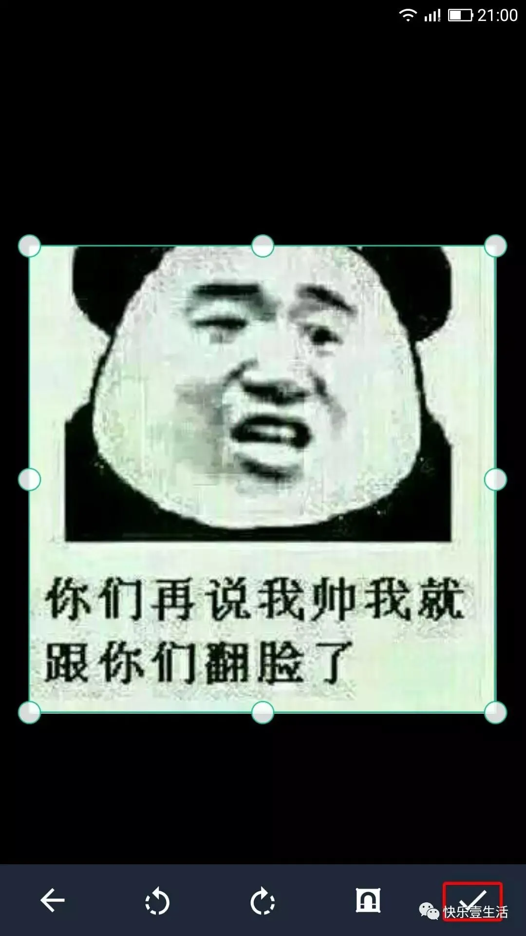 第二步软件会出现有控制点的图框,这时你可以选择图片的大小。点确定按扭。如下图所示。